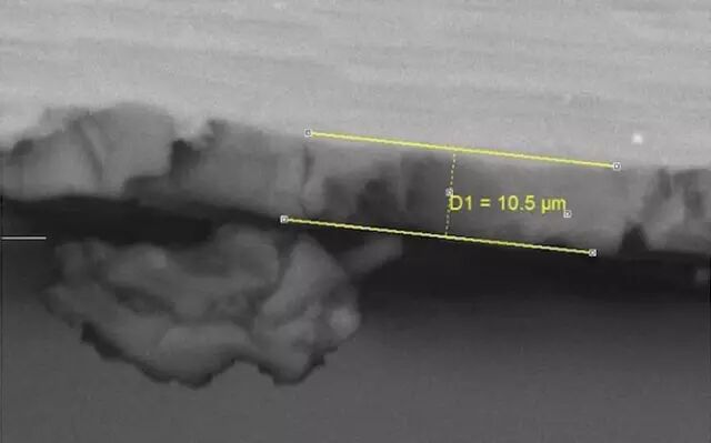 蘋果iPhone 6s的外殼材料成份中還包含8%的鐵,可以用來增強(qiáng)耐用性,在生產(chǎn)過程當(dāng)中更容易鑄造成型。iPhone 6s采用了7000系列鋁合金提升硬度和耐用性,從而避免再次出現(xiàn)“彎折門”的缺陷。同時借助電子顯微鏡的幫助,實驗室還發(fā)現(xiàn)iPhone 6s的外殼上還覆蓋著大約10微米厚的鋁陽極氧化膜,這不僅意味著能夠提供更好的防腐蝕保護(hù),而且陽極氧化層的出現(xiàn)也使得蘋果可以使用染料推出不同顏色的iPhone 6s。